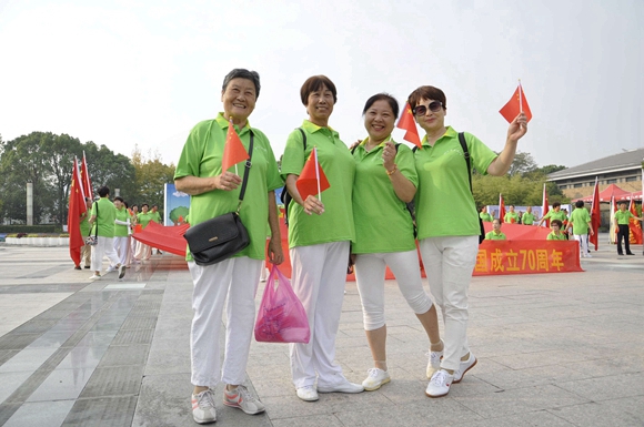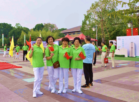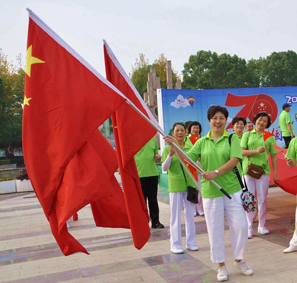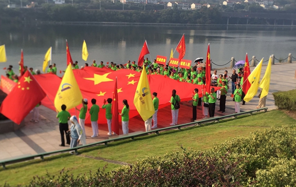 金色的晨曦中,鮮艷的五星紅旗迎風(fēng)招展,紅旗的映襯下,身為中華兒女的麗汽人笑容綻放、步伐矯健,《我和我的祖國(guó)》那熟悉的旋律在防洪堤的上空久久回蕩……