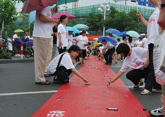 健步走隊伍在麗水市委書記陳榮高的帶領(lǐng)下,從濱水公園出發(fā),沿著花園路-囿山路-宇雷路-江濱路返回濱水公園,盡管活動開始后不久,天空就下起了小雨,但是這絲毫沒能阻擋大家的熱情,隊伍冒雨堅持走完了全程。到達(dá)終點(diǎn)后,大家在印有麗水市“全民健身日”暨萬人健步走活動的橫幅上簽字。