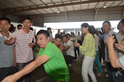 比賽在客運西站與南明物流的對決中首先開始。隨著裁判的一聲哨響,霎時間,加油聲和歡笑聲便響徹了整個修理車間。隊伍間實力相差懸殊的,裁判員比賽哨聲剛落,比賽就已經(jīng)結(jié)束了,引來了一陣陣歡笑聲;實力在伯仲之間的,那可就精彩了,加油鼓勁的喊破了嗓子,大力士們也是漲紅了臉,累得渾身冒汗。