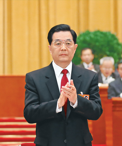 習(xí)近平表示,胡錦濤同志擔(dān)任國(guó)家主席10年間,以豐富的政治智慧、高超的領(lǐng)導(dǎo)才能、勤勉的工作精神,為堅(jiān)持和發(fā)展中國(guó)特色社會(huì)主義建立了卓越的功勛,贏得了全國(guó)各族人民衷心愛(ài)戴和國(guó)際社會(huì)普遍贊譽(yù)。在習(xí)近平的提議下,全場(chǎng)以熱烈掌聲,向胡錦濤表示衷心的感謝和崇高的敬意。
