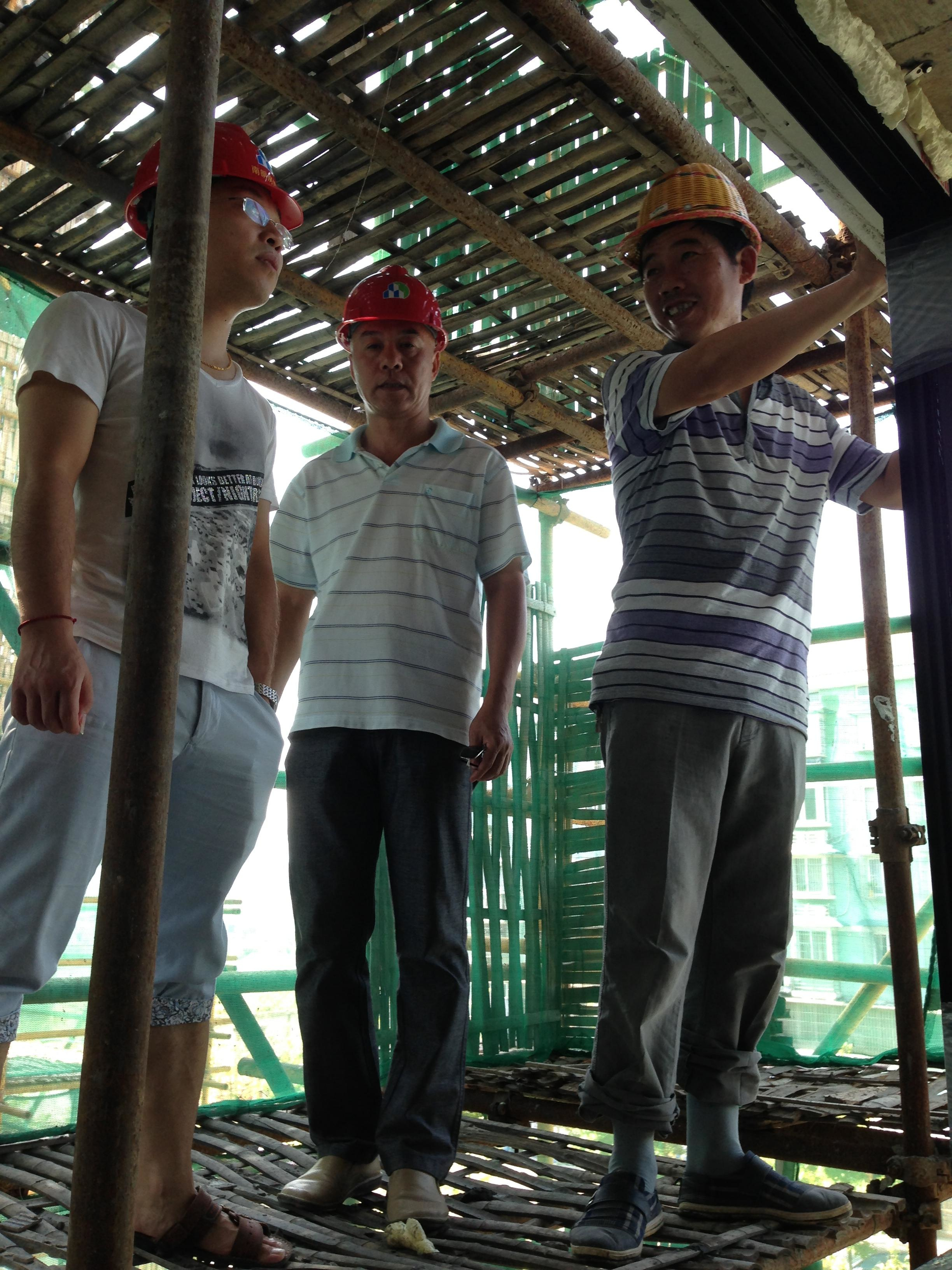 走進(jìn)施工現(xiàn)場,大家沒有被高溫所嚇到,堅守在自己的崗位上,兢兢業(yè)業(yè)地完成著各項任務(wù)。看!工程部員工正深入工地現(xiàn)場了解情況:檢查鋁合金門窗安裝是否符合要求;對防火門材料進(jìn)行記錄,對比質(zhì)量是否達(dá)標(biāo);對施工所需的鋼筋、水泥等材料的檢驗以及重要部位和關(guān)健節(jié)點的施工,進(jìn)行監(jiān)督管理。站在太陽底下,這痛苦的“桑拿天”讓員工們的衣服被汗水浸濕,嘴巴里就像有團火,手剛抹掉額頭的汗,馬上就會流出來,褲子上逐漸出現(xiàn)了“云彩”,原來那是汗?jié)n。為了工程項目能早日竣工交付使用,大家都沒有一句怨言,正以百分之二百的熱情投入這場“高溫持久仗”中。