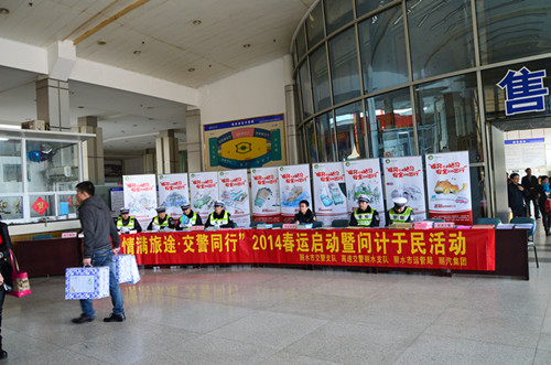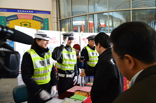16日上午,集團(tuán)公司與市交警支隊(duì)、高速交警支隊(duì)、市運(yùn)管局等單位在客運(yùn)西站舉行春運(yùn)啟動(dòng)暨問(wèn)計(jì)于民活動(dòng)。(宣教部 蘭寧)