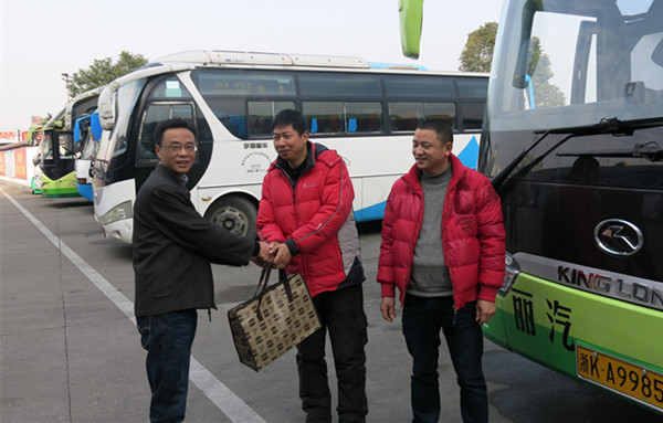 1月17日上午,旅游集散中心經(jīng)理葉劍飛、工會主席葉學(xué)敏、副經(jīng)理余雷及車隊(duì)隊(duì)長王華南一行在汽車東站經(jīng)理梁巍的陪同下,給在東站春運(yùn)加班的駕駛員送去節(jié)前的問候和慰問品,叮囑駕駛員路途首先是注意安全,在駕車時必須控制好車速,特別是在駛經(jīng)彎道、坡路、橋梁、窄路和視線不良、交通流量大的路段或遇到下雨、下雪、大霧等惡劣天氣時,更要按照限速規(guī)定嚴(yán)格控制車速,避免發(fā)生交通事故;然后做好保暖工作,搭班駕駛員互相照應(yīng),不能疲勞駕駛,注意自身健康。
