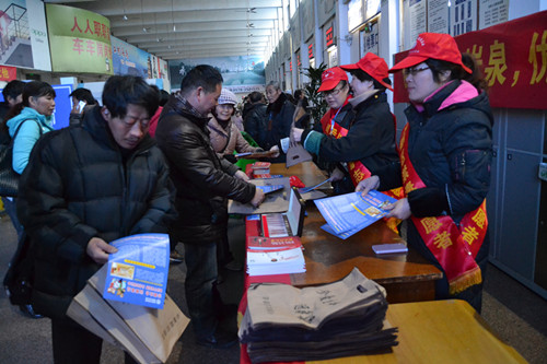 為進一步建設平安蓮都,共創(chuàng)和諧社會,2月13日上午,東站借春運來往旅客多、宣傳效果廣泛的契機,聯(lián)合巖泉街道在東站候車廳內向廣大旅客宣傳“珍愛生命,遠離毒品”。社區(qū)禁毒干事趙素珍女士和東站春運志愿者服務隊的隊員們,向廣大旅客、車主和職工發(fā)放了禁毒宣傳資料手冊、青少年禁毒漫畫等禁毒宣傳資料;同時還給現(xiàn)場的旅客耐心講解了毒品的危害。通過此次宣傳活動,使廣大旅客進一步認清毒品的危害,增強自我保護的意識,自覺抵制和遠離毒品。
