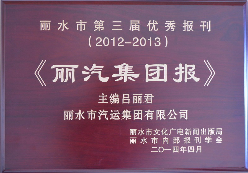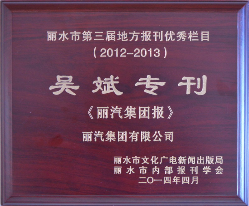在5月23日召開的麗水市內(nèi)部報(bào)刊學(xué)會年會上,麗汽集團(tuán)被授予麗水市內(nèi)部報(bào)刊學(xué)會副會長單位,《麗汽集團(tuán)報(bào)》和《麗汽集團(tuán)報(bào)--吳斌??贩肢@表彰為麗水市第三屆優(yōu)秀報(bào)刊和麗水市第三屆地方報(bào)刊優(yōu)秀欄目。