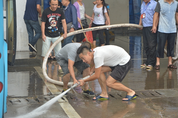 西站救援隊(duì)伍來了,他們?cè)诮?jīng)理雷文華的帶領(lǐng)下,最早趕赴東站站場,保衛(wèi)稽查員們嫻熟地操起消防帶,通過水槍沖洗淤泥。