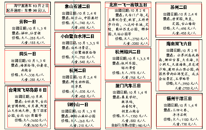 國(guó)內(nèi)方面,十一期間最受歡迎的長(zhǎng)線主要有北京、海南、九寨溝、云南。短線則是廈門、蘇州、象山石浦、杭州紹興。目前正在火熱收客中。