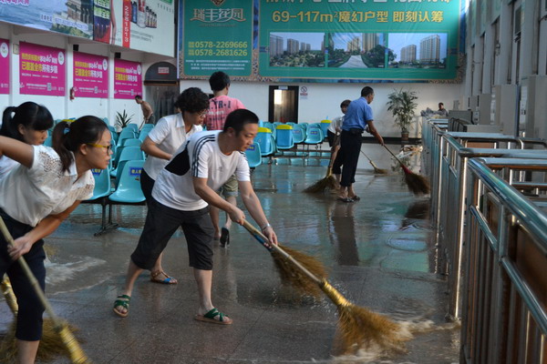 在客運(yùn)東站全體員工的共同努力和兄弟單位的共同幫助下,災(zāi)后第二天,客運(yùn)東站就恢復(fù)了正常運(yùn)營。為徹底清除災(zāi)后留下的站場內(nèi)外衛(wèi)生死角,22日,東站黨支部繼續(xù)組織全體黨員和團(tuán)員對東站災(zāi)后的站場內(nèi)外衛(wèi)生進(jìn)行了打掃。