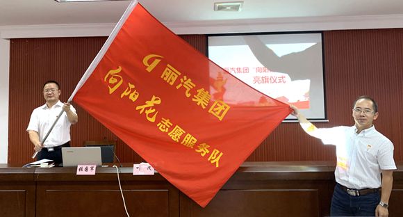 專題黨課后,還舉行了麗汽集團(tuán)“向陽花”志愿服務(wù)隊亮旗儀式。經(jīng)過前期征名和討論,集團(tuán)公司黨、政、工、團(tuán)四條線的志愿服務(wù)隊合并定名為“向陽花”志愿服務(wù)隊,此舉將規(guī)范統(tǒng)一麗汽集團(tuán)的志愿服務(wù)載體,使廣大黨團(tuán)員和員工投身志愿服務(wù)的參與面更為廣泛。