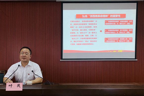 為傳達(dá)市人大常委會《關(guān)于弘揚浙西南革命精神的決定》精神,引導(dǎo)廣大黨員干部夯實黨務(wù)知識和工作水平,更好地弘揚踐行“浙西南革命精神”,7月31日,麗汽集團(tuán)組織開展弘揚“浙西南革命精神”專題黨課暨黨務(wù)知識培訓(xùn)。集團(tuán)公司黨委書記葉茂上專題黨課,各黨(總)支部委員、團(tuán)員干部等60余人參加學(xué)習(xí)培訓(xùn)。