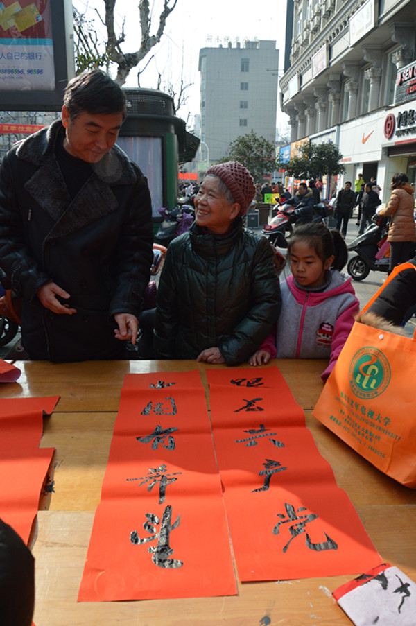服務(wù)活動(dòng)接近尾聲時(shí),一幅“跟著共產(chǎn)黨,中國有希望!”的春聯(lián)吸引了眾人的目光,一位大媽急忙說這幅對(duì)聯(lián)一定要留給她,還不忘告訴一旁的孫女:“你現(xiàn)在吃得好、穿得好,還能上那么好的學(xué)校,可全是黨的功勞!”周圍的群眾也紛紛感嘆:“現(xiàn)在大家都有房有車,以前真是做夢也想不到的!”一幅對(duì)聯(lián)寫出了大家的心里話,服務(wù)活動(dòng)雖然只有短短半天時(shí)間,但黨群一家親的氛圍卻留住了盎然春意,讓所有人心頭充滿了新年的期盼。